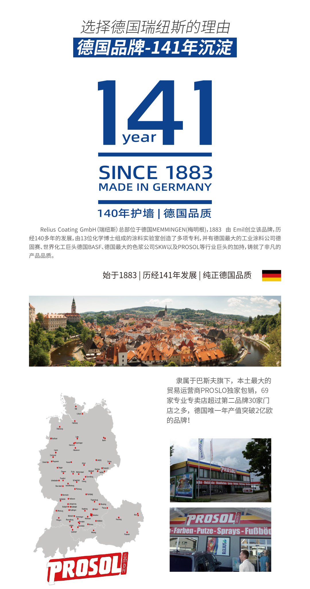 德国RELIUS瑞纽斯,隶属于巴斯夫旗下,本土最大的贸易运营商PROSLO独家包销,69家专业专卖店超过第二品牌30家门店之多,德国唯一年产值突破2亿欧的品牌!
