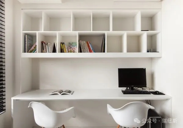 白色系——可以选择白色的墙面和天花板,搭配深色的家具和书架,营造出简洁、明亮的氛围。