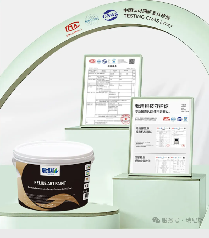 瑞纽斯G9艺术涂料除了纹理多样,质感细腻耐污易擦的特点外,还秉持着对环保健康的严格追求,采用德国原厂配方,通过多项环保权威认证,在为家居环境增添艺术美感的同时,也让人们无需担忧涂料可能带来的健康隐患,真正做到了美观与安全并重。