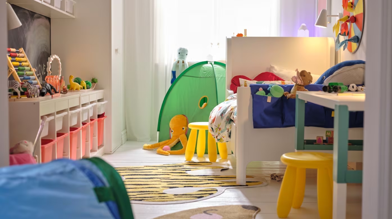 房间面积可能较小,但是可以采用丰富的色彩,让这个特别的卧室成为激发孩子想象力的乐园。清爽、现代且富有趣味,这个房间布置巧妙,无论专注时光还是游戏玩乐都有可用的空间,因此可以激发孩子的不同感官,帮助他们获得温馨感和安全感。